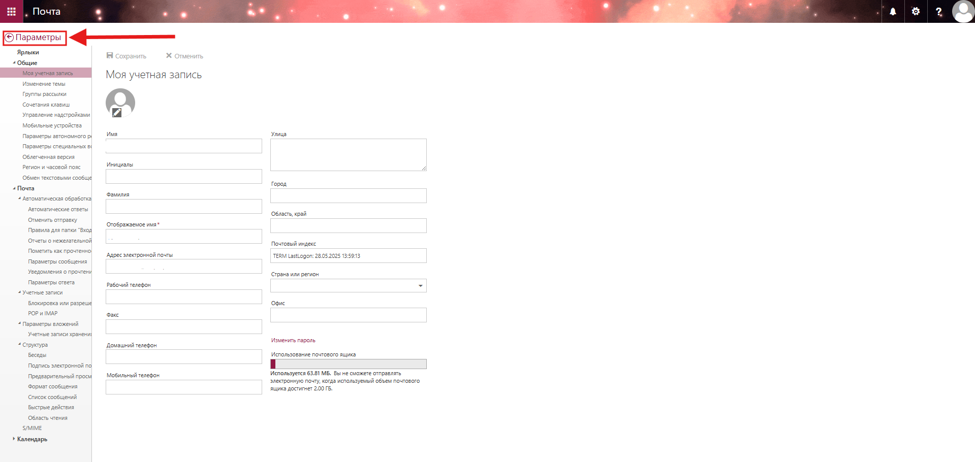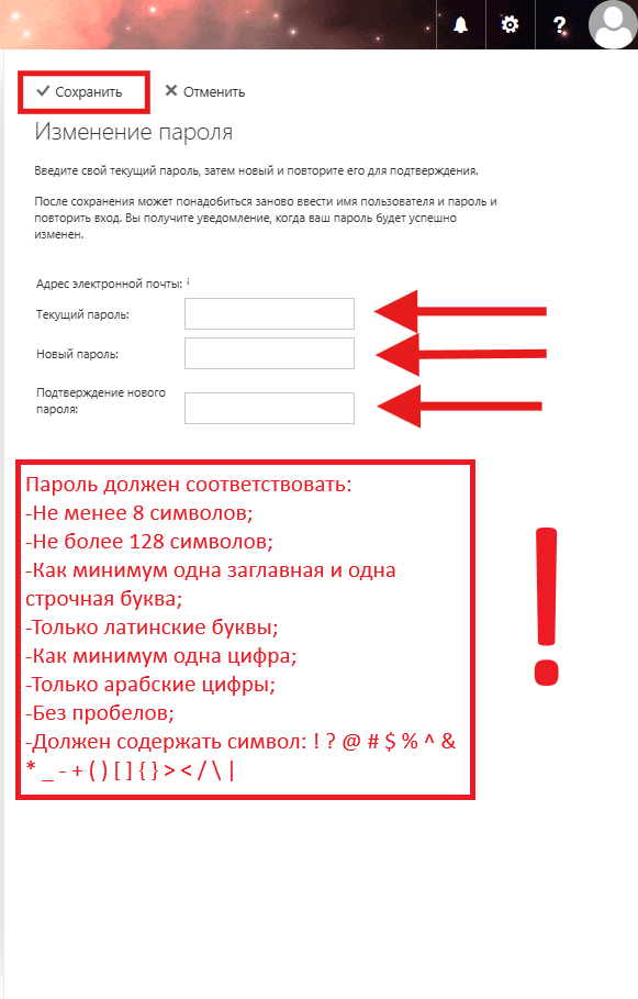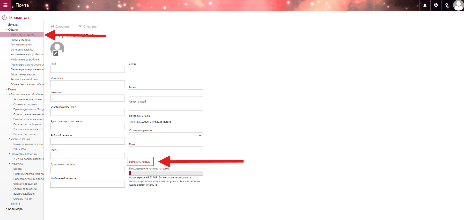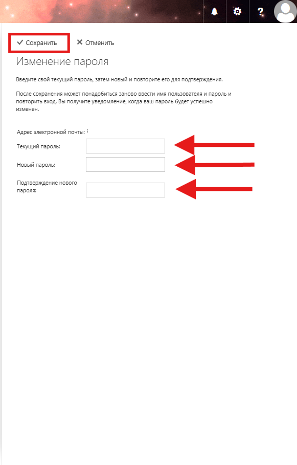 Смена пароля в почтовом ящике